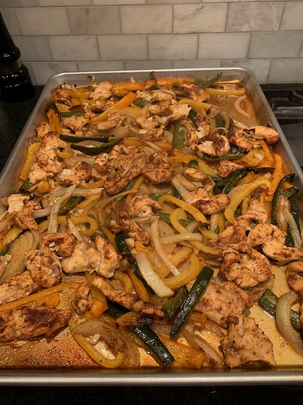 I imagine I’m not alone in an occasional lack of creativity when it comes to weeknight meals. It’s only Bill and me now most nights, and, although I cook for living, it’s amazing how often that doesn’t translate to a delicious dinner on the table. This Sheet Pan Chicken Fajitas is a lifesaver. You can easily adjust it to your favorite proteins, veggies and extras to make a terrific, tasty dinner your whole family will love.