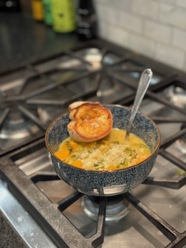 I invite you to join me in the kitchen by making this awesome Autumn Squash Soup. It’s full of flavor and happiness – just the ticket for tomorrow. A nice glass of white wine or your favorite mocktail can’t hurt either.
