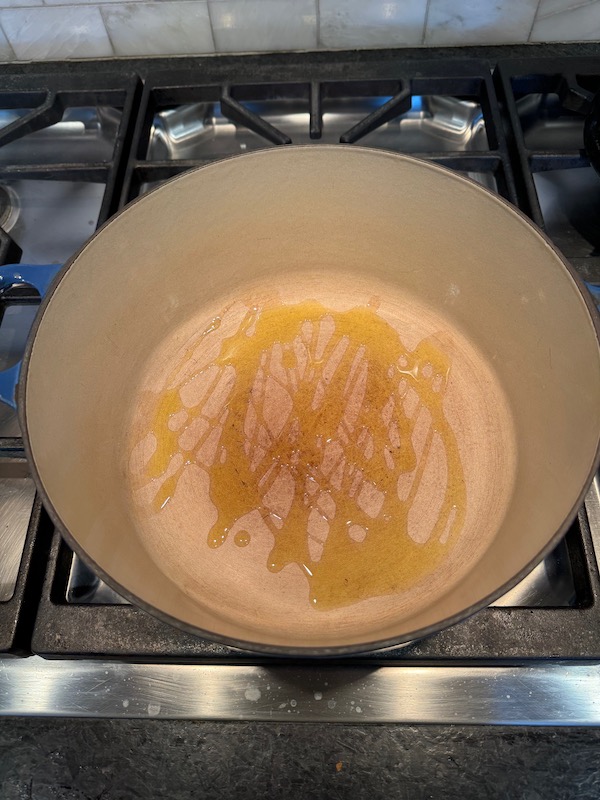 • Heat the olive oil in a large, heavy soup pot